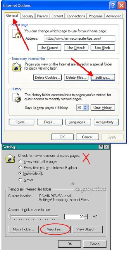 3. Settings цонхонд дахь View Files дээр дарахаар Temporary Internet File-ууд харагдах ба энд орсон хуудас болгоны чинь бүх файлууд харагдах болно.